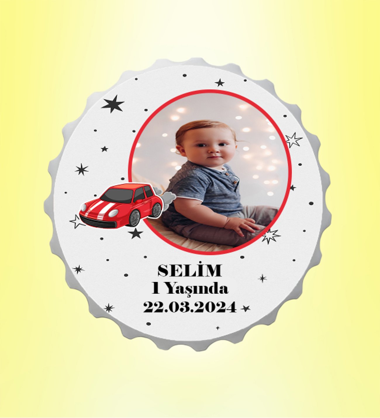 Arabalı Resimli İsimli Yıldız Kapak Magnet Açacak Kişiye Özel