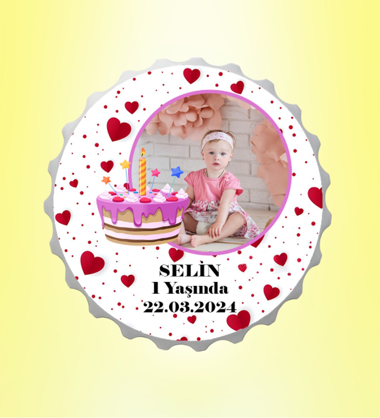 Doğum Günü Pastalı Resimli İsimli Kalpli Kapak Magnet Açacak Kişiye Özel