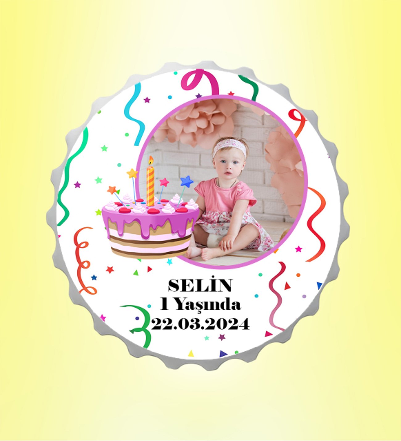 Doğum Günü Pastalı Resimli İsimli Parti Magnet Kapak Kişiye Özel