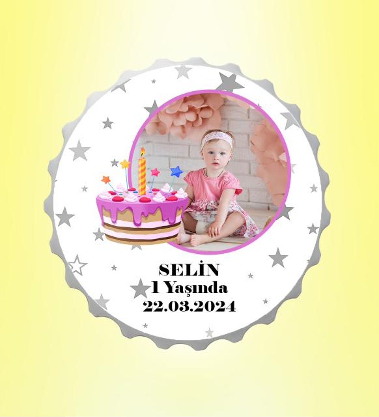 Doğum Günü Pastalı Resimli İsimli Yıldızlar Kapak Magnet Açacak Kişiye Özel