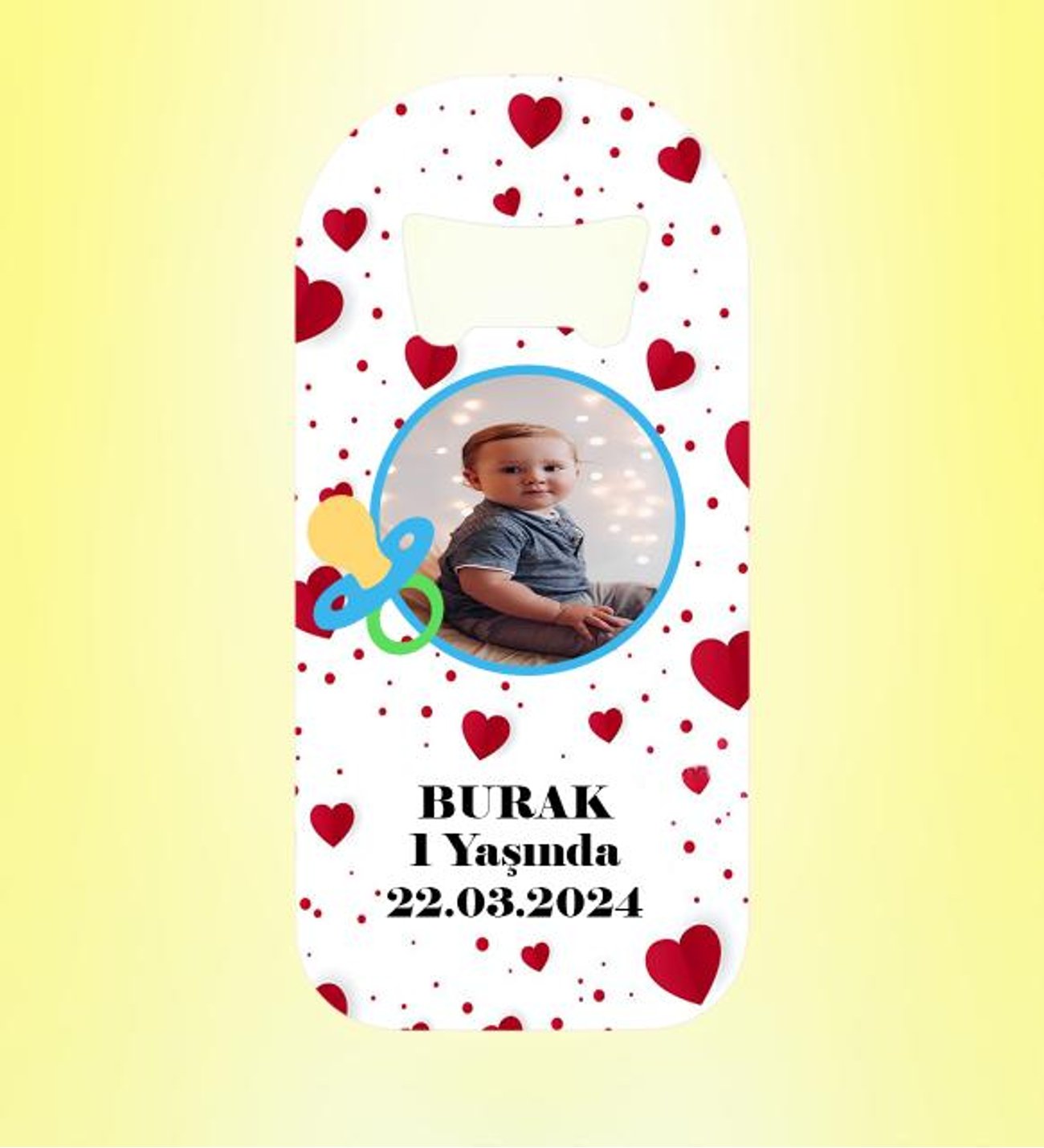 Erkek Bebek Emzikli Resimli Kalpli Magnet Açacak Kişiye Özel