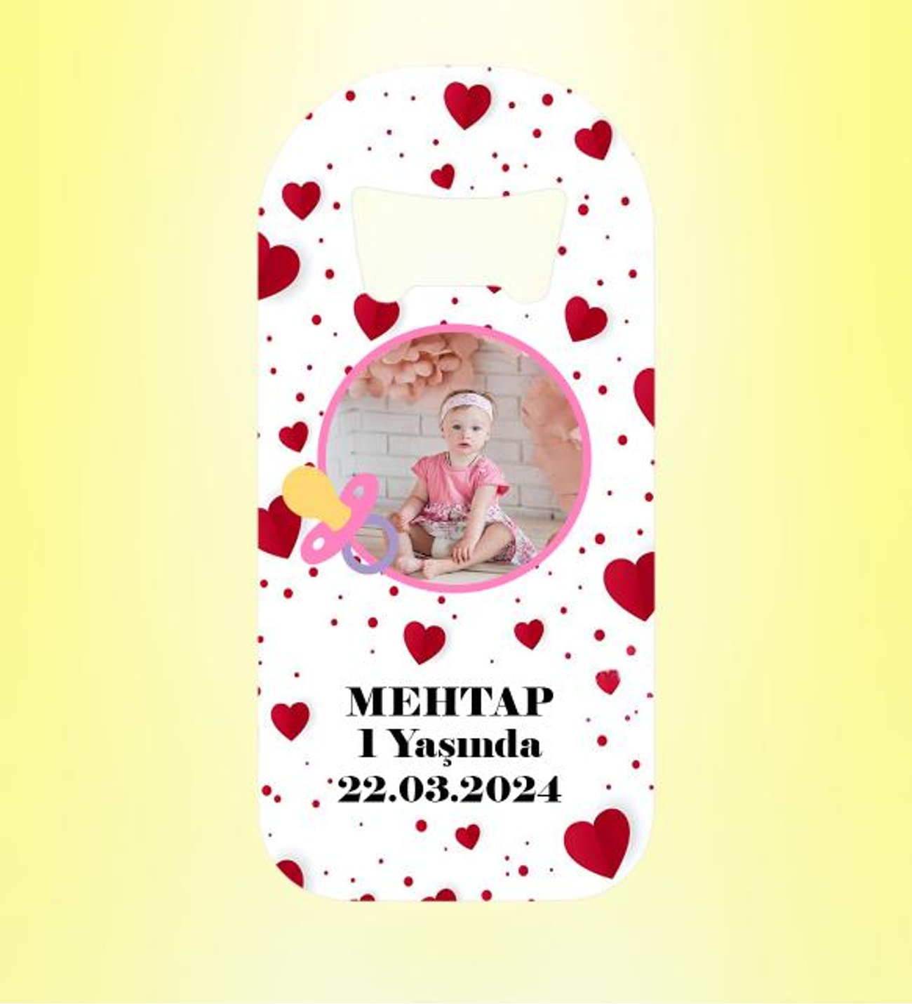 Kız Bebek Emzikli Resimli Kalpli Magnet Açacak Kişiye Özel