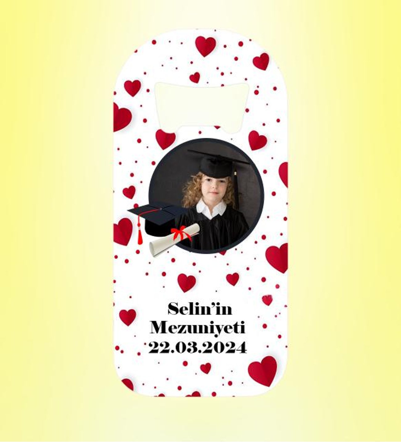 Mezuniyet Resimli Kalpli Magnet Açacak Kişiye Özel