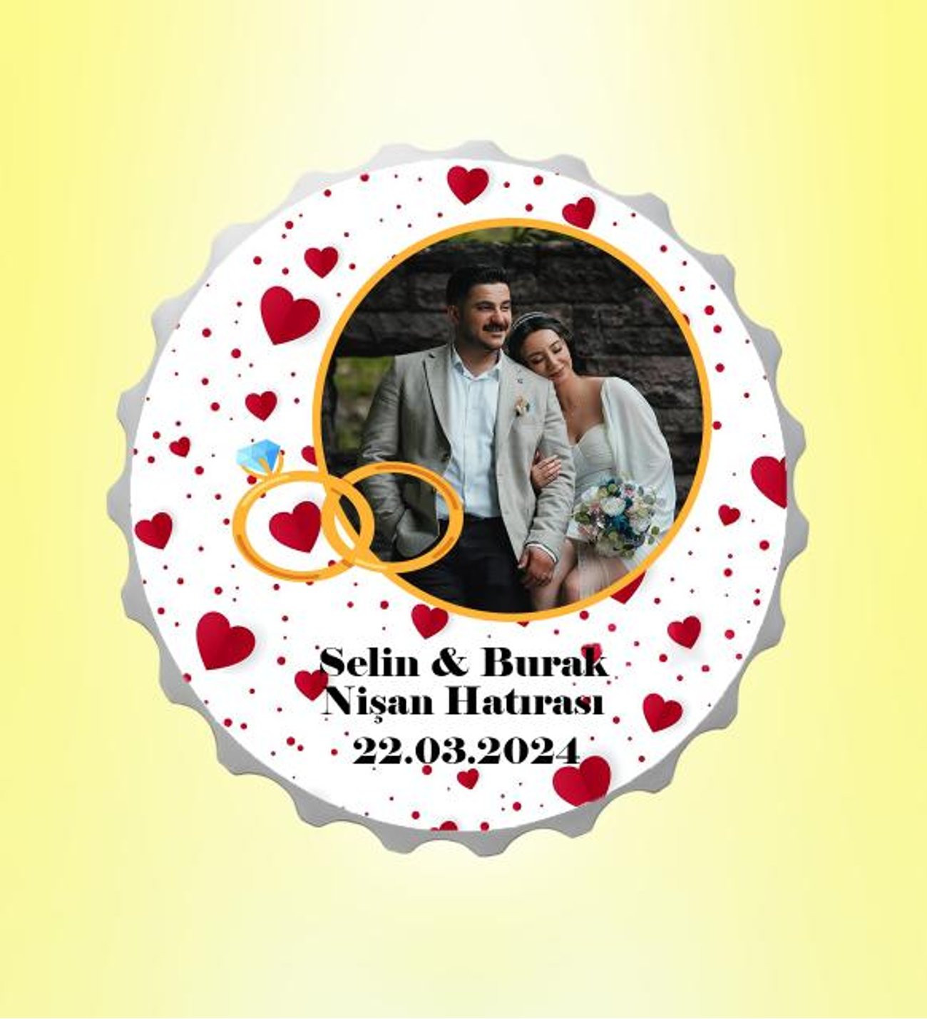 Nişan Hatırası Resimli İsimli Kalpli Kapak Magnet Açacak Kişiye Özel