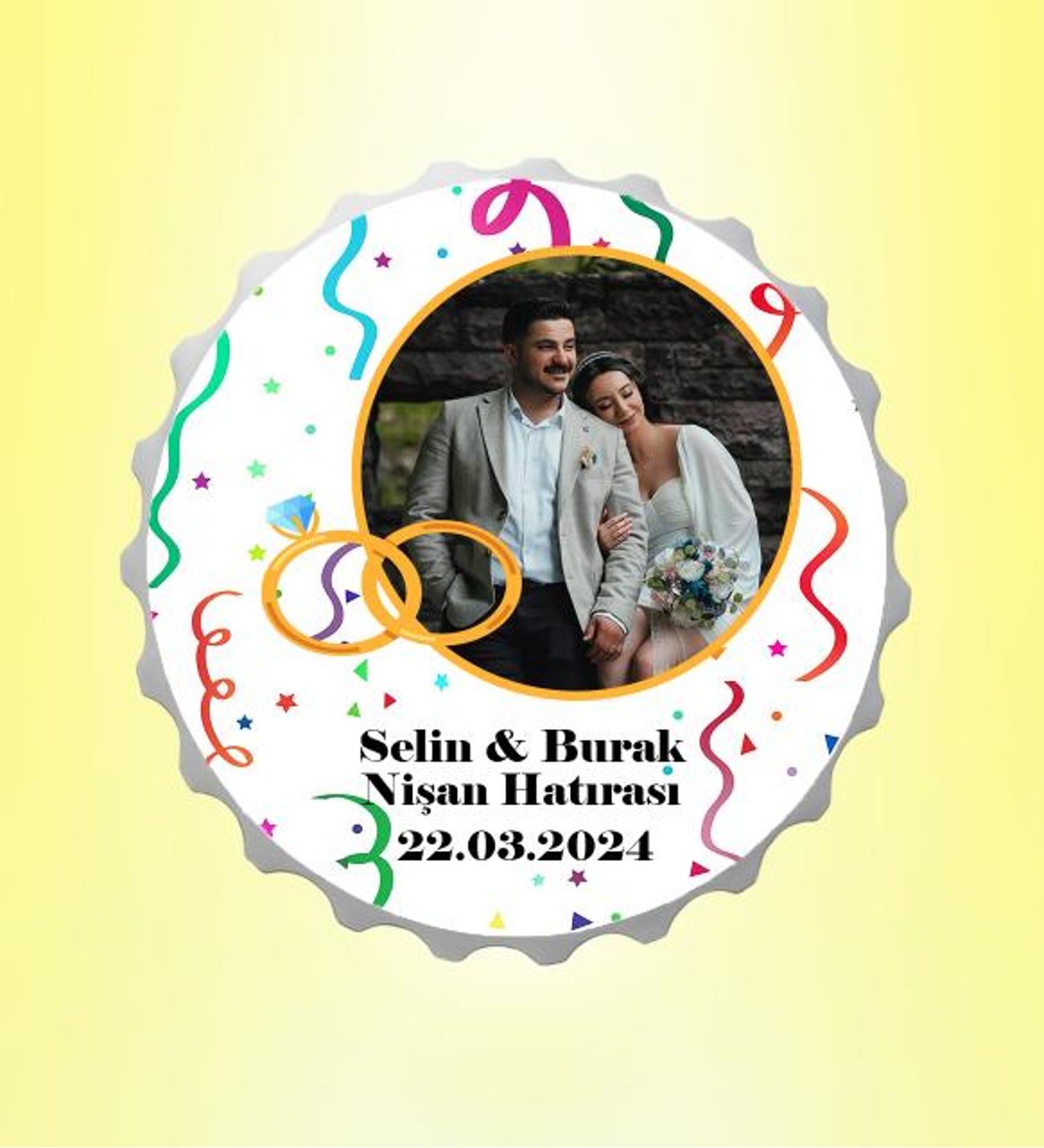Nişan Hatırası Resimli İsimli Parti Magnet Kapak Açacak Kişiye Özel