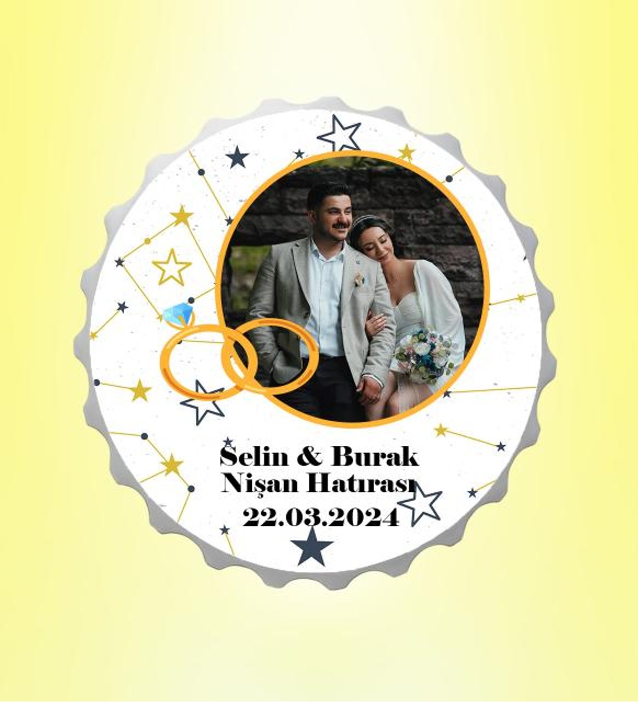Nişan Hatırası Resimli İsimli Yıldız Haritası Kapak Magnet Açacak Kişiye Özel