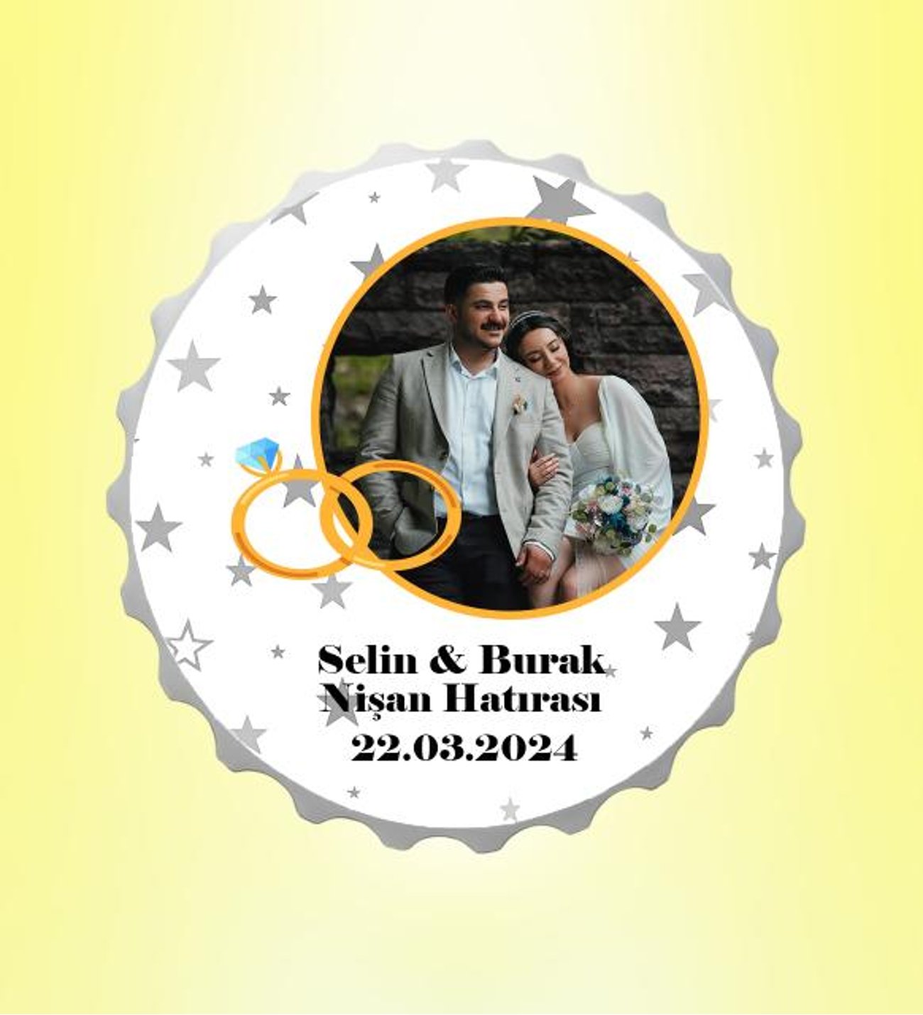Nişan Hatırası Resimli İsimli Yıldızlar Kapak Magnet Açacak Kişiye Özel