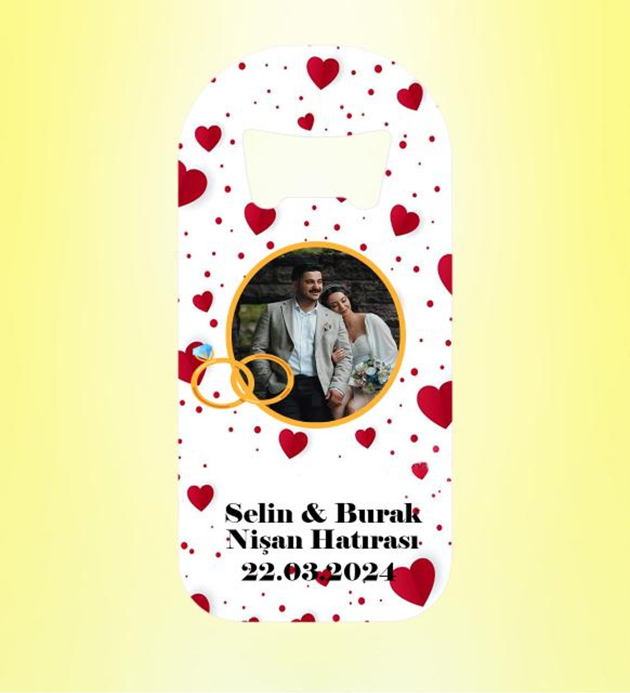 Nişan Hatırası Resimli Kalpli Magnet Açacak Kişiye Özel