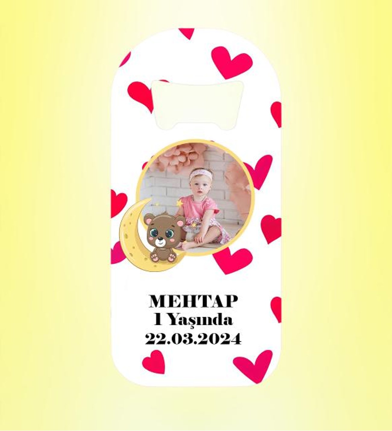 Resimli İsimli Ay Kalp Desenli Magnet Açacak Kişiye Özel