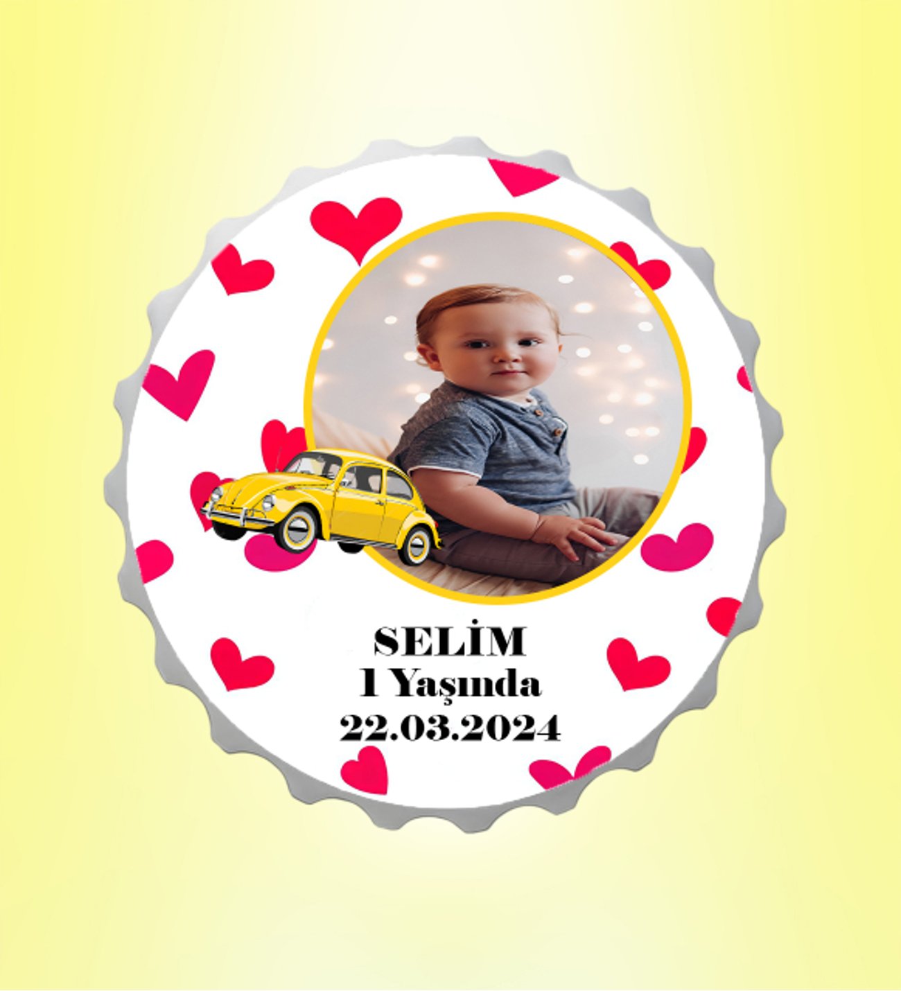 Vosvos Resimli İsimli Kalp Desenli Kapak Magnet Açacak Kişiye Özel